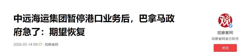 截至 2026 年 3 月 16 日,中远海运尚未恢复巴尔博亚港的业务,中方也未对巴拿马的口头请求做出妥协。这场风波再次证明,国际经贸往来里,规则与诚信才是长久之道,任何试图靠强权、单边主义破坏合作的行为,最终都会反噬自身。