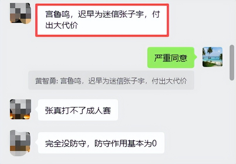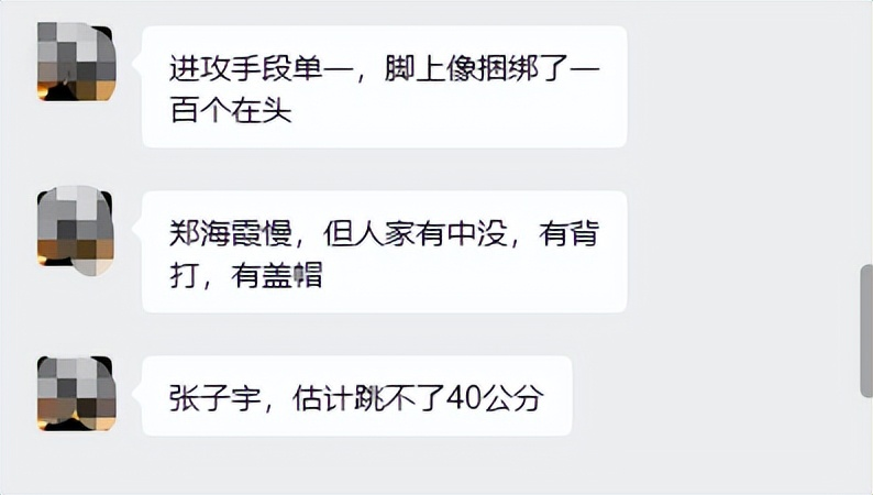 球迷说,张子宇在场就是4打5,完全没防守,防守作用基本为0。进攻手段单一,步伐移动缓慢,脚上像捆绑了一百斤石头。人家郑海霞也慢,但人家有中没,有背打,有盖帽。可是张子宇有什么呢?没有一个抢断和盖帽,甚至篮板球和助攻也比另两个中锋少得多。